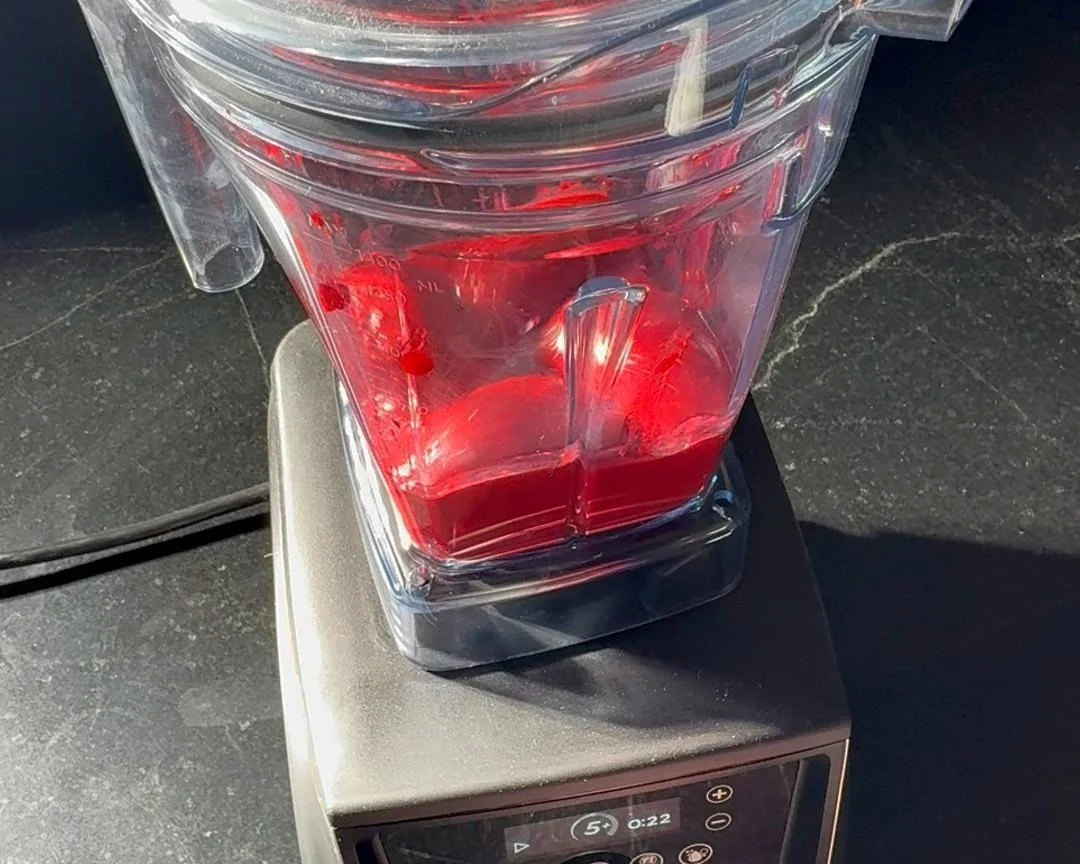 Once cooled blend thoroughly in a blender. You will see the color brighten as the mixture becomes somewhat aerated and homogenous.